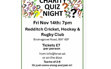 We have a fund-raising quiz night on Friday 14th November at Redditch Cricket, Hockey and Rugby Club, Only £7 a ticket. Start time 7pm. Come with a team or come on your own. Everyone welcome.