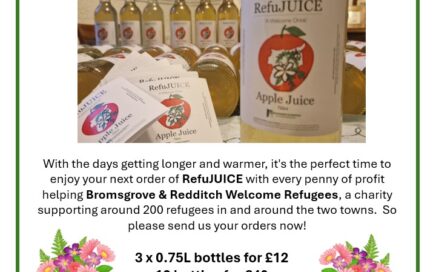 Dear Loyal Customer, We’re planning another delivery round for Refujuice – one of the biggest annual fundraisers for Bromsgrove & Redditch Welcome Refugees. And we hope you will all continue your fabulous support for the charity and enjoy some more of this rather lovely apple juice. We will deliver for free, orders of three or […]